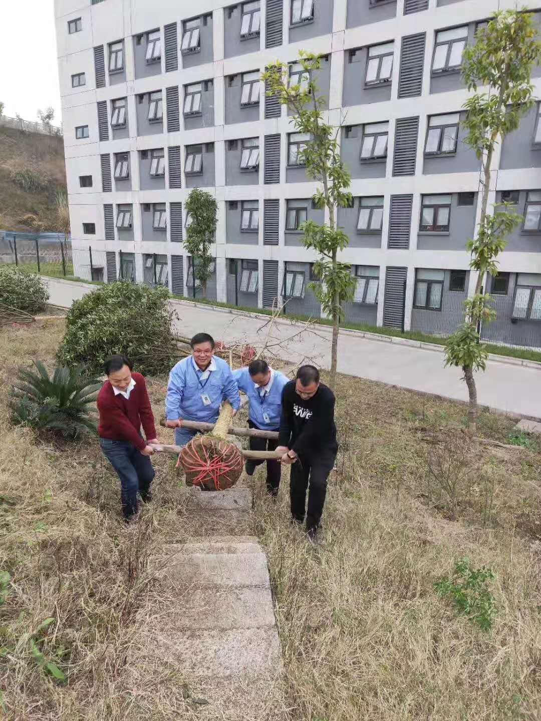 经过大家共同努力,200余树木栽满b体育花园,为原本杂草丛生的山坡披上了崭新的绿装。