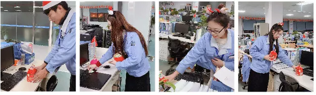 23日夜间行政工会人员将圣诞节平安果,放在每一位员工的办公桌上。我们将平安和祝福送给公司的每一位员工,每一个平安果上都有我们满满的祝福。